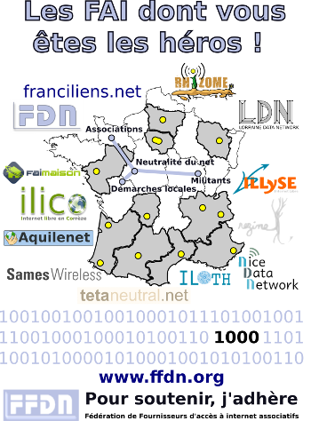 Nos associations ont toutes comme activité principale de fournir de l'accès Internet, mais ce n'est pas notre seule activité. Nous agissons aussi pour défendre nos valeurs : la liberté d'expression sur le réseau, la neutralité du Net, la gestion participative du réseau, la diffusion de la connaissance sur les dessous d'Internet. Pour toutes ces activités, qui sont essentielles à la défense d'un Internet libre, nous avons besoin d'être nombreux. D'abord d'être nombreux à agir, ce que permet d'essaimer un grand nombre d'associations. Mais aussi d'être nombreux à soutenir, nombreux à se tenir informés, nombreux à relayer le message partout où c'est nécessaire.